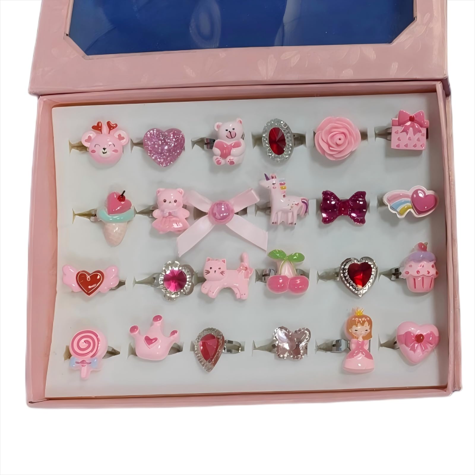 PinkSheep Little Girl Jewel Rings in Box, Adjustable, No duplication, Girl Pretend Play and Dress Up Rings (30 Jewel Ring)