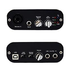Interfaz de audio USB "compatible con clase", interfaz de audio USB estéreo de 16 bits/48 kHz, 1 entrada combo XLR/TRS, 1 entrada TRS Hi-Z/línea, preamplificador de micrófono con alimentación fantasma de 48 V, salida de auriculares, LED de señal y pico, full duplex, alimentado por bus USB.
