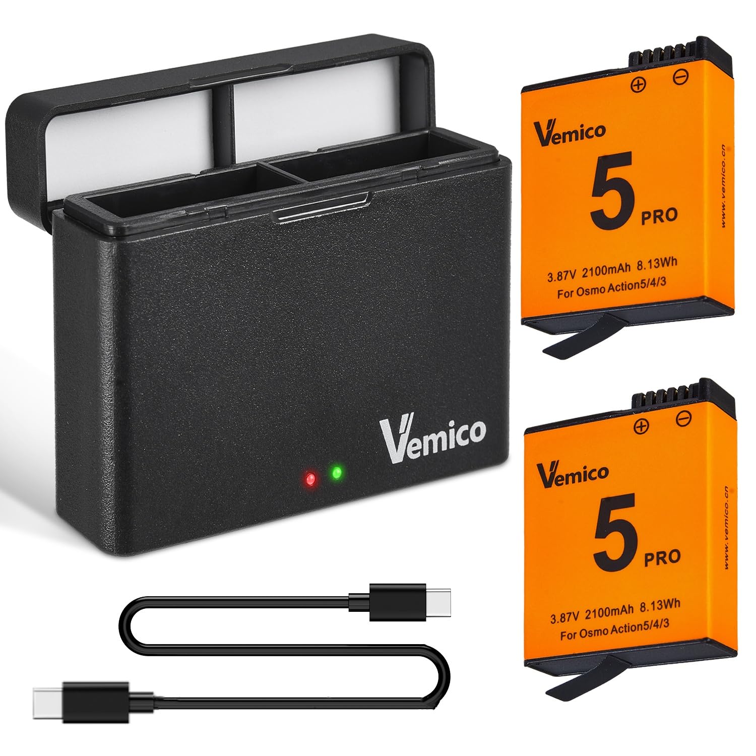 Vemico Action Camera Battery, 3x1050mAh Rechargeable Sports Action Camera Battery for AKASO/Campark APEMAN/DBPOWER/NEXGADGET/WiMiUS/Lightdow/EKEN with Dual Battery Charger Kit