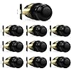 Probrico Black Door Knobs, Keyless Flat Ball Interior Door Knobs for Hallway Closet, Matte Black Passage Door Knob, 10 Pack