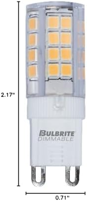Bulbrite T4 dimmable 4.5 watt 3000K LED bulb with G9 base generates as much light as many 35 watt T4 halogen capsule bulbs. Compatible with Lutron DV-600-WH and S-600-WH dimmers No lead or mercury means easy disposal and a better environment Very long life - Rated to still put out 70% as much light after 15,000 hours of operation as it does when brand new Not recommended for use in enclosed fixtures because heat buildup will shorten life. Do not "hot swap" this bulb. Turn off fixture before replacing existing bulb.