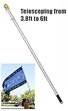 This 6ft Aluminum hand-held pole with gold ball top is created with a sturdy handle for an easy grip. Pole features adjustable clip and telescoping from 3.8ft to 6ft to accomodate flags of various sizes. Wave your flag proudly & comfortably with 1-inch diameter pole and weighing less than a 1 lb. Perfect for flag waving at parades and sporting events!