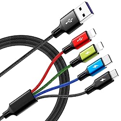 - Special Design One cable = Four charging cables! The design is very compact, lightweight and small. Charge your device anytime, anywhere. 4A Super Multi-Functional Fast charger cord: Convenient Minlu 4A multi charging cable has multiple different charging connectors, that means one cable can meet your daily devices charging needs when you are going a long trip , in the office ,in the car or at home, which makes your life more convenient, smart, and colorful, you deserve to own one. Please Note: (1) Please use 5V/3.0A charger when charging multiple devices. (2) Only the iP connector supports charged and transfer data, the usb-c and Micro usb connector can only be charged and does not support data transmission. Compatible with: iP Port: Phone 13 Pro Max/13 Pro/13 mini/12 Pro Max/12 Pro/ 12/11/ XS Max/XS/XR/X/8/8 Plus/7/7 Plus/6/6s Plus/5s/5c/5 Pad Air/Air 2/Pro/Mini 2/Mini 3/Mini 4, Pad (4th generation) Pod nano (7th generation) and Pod touch (5th generation),etc. Micro USB: Compatible with most Android phones,tablets,Bluetooth headset,external batteries,PS4/Xbox one controllers and more. USB-C: Compatible with Samsung S21/S20/S10/S10+/S9/S9+/S8/S8+/Note 10/9/8,Huawei,LG V30 V20 G6 G5,Nexus 5X 6P,Pixel/Pixel 2 XL,NintendoSwitch, HTC 10 , OnePlus, Xiaomi and more. Feature: Material: High quality nylon braided cable Length: 1.8M Color: Black Packing: 2 Packs Compatible Interface: iOS, Micro USB, Type C