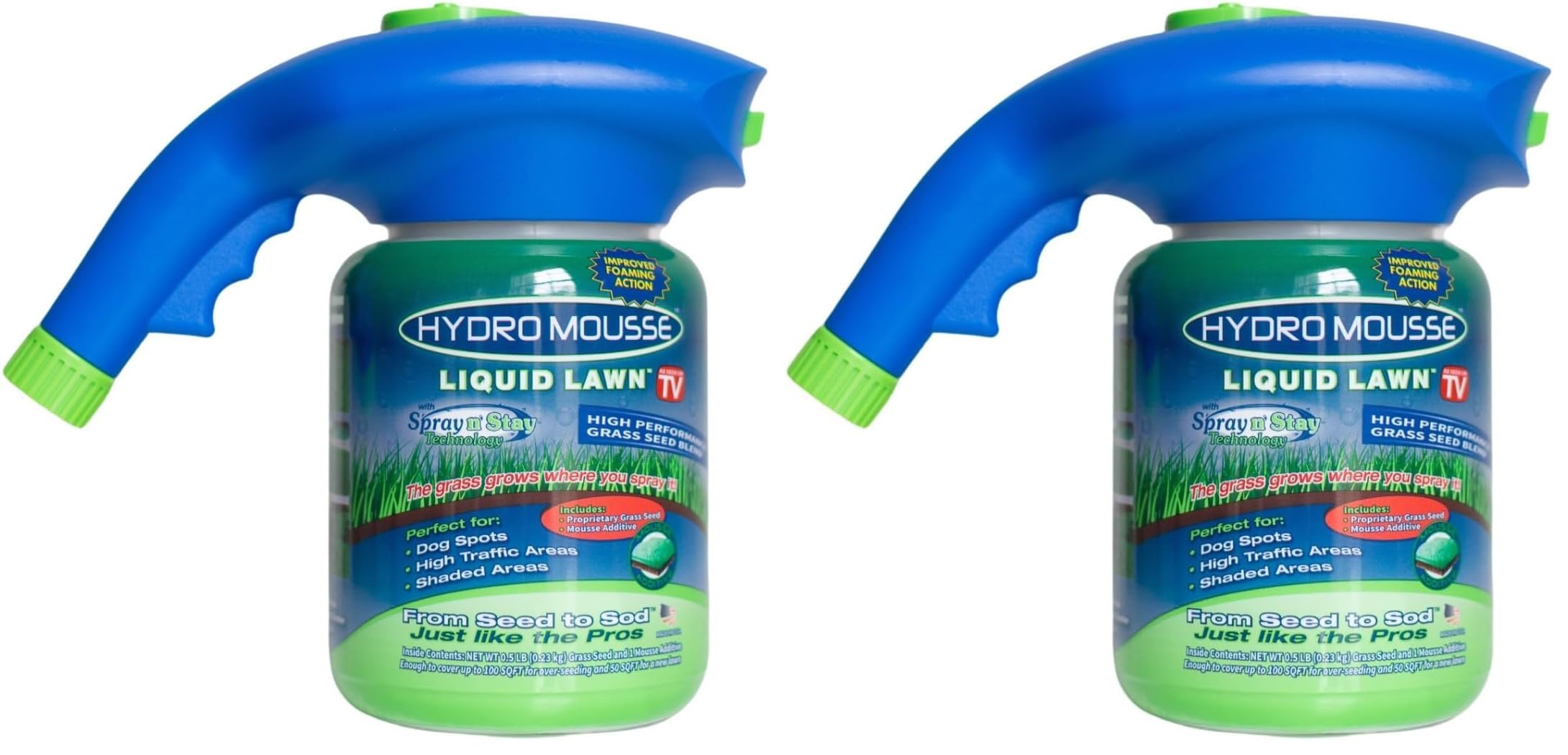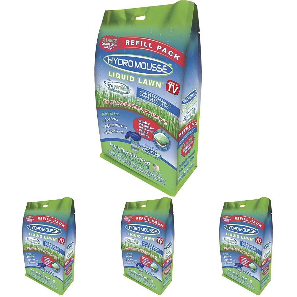 As seen on TV, Hydro mousse liquid lawn Bermuda refill, includes 2 oz mousse Pod & lb of seed, grass grows where you spray it from seed to sod like the pros, over seeding, Dog spots, shaded & high traffic areas lb refill bag coverage area up to 1000 soft.