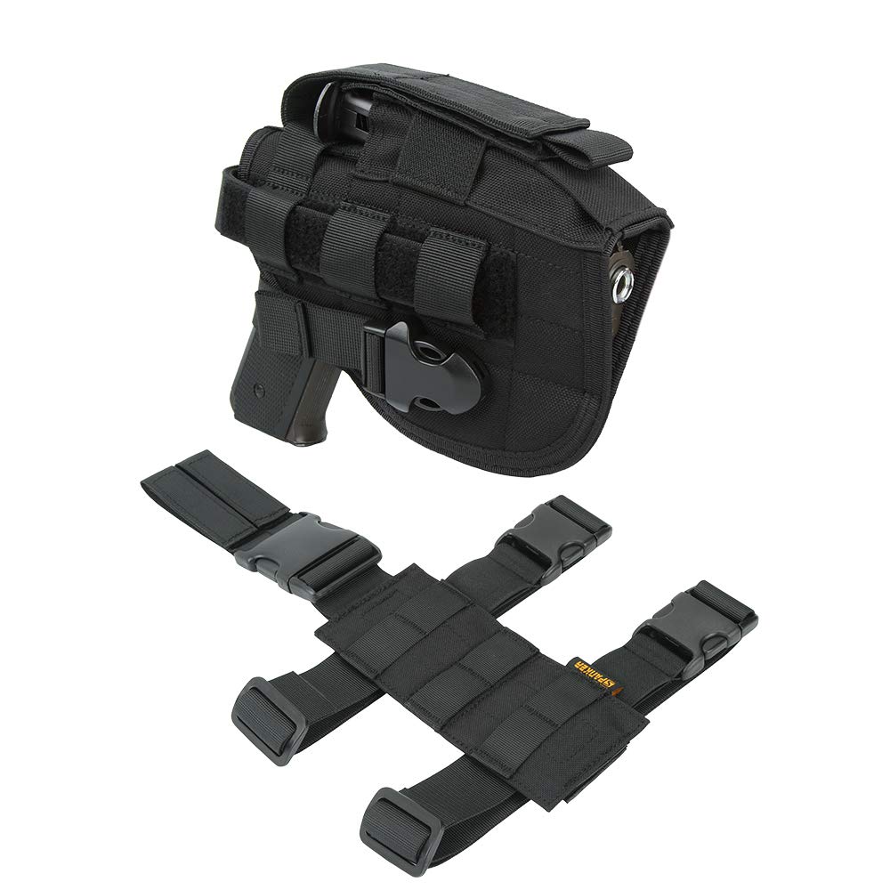 - Molle Belt pistol holster, it can be hung on the equipment with molle module, tactical vest, backpack, belt, etc. In any tactical situation,provide excellent flexibility and security, Note: This product doesn't contain drop leg platform.