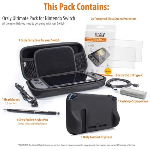 Orzly Switch 1 / Switch OLED Accessories Bundle – Case & Screen Protector for Nintendo Switch 1 (2017-2024 Console) Charge Cable, Game Holder, Comfort Grip Case, Headphones & More – Gift Box Edition