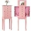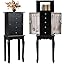 - Flip Top Mirror with Hidden Storage – Designed with a flip-up vanity mirror, this freestanding jewelry armoire makes it easy to accessorize and check your look. Beneath the mirror, 4 divided compartments keep rings, earrings, and other small pieces neatly organized.