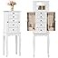Giantex Standing Jewelry Armoire Cabinet with 4 Drawers, Flip Top Mirror, Top Storage Compartments, 2 Side Doors with 8 Necklace Hooks, Freestanding Jewelry Organizer Box Chest (White)