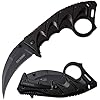 - SPECIAL FEATURES: Finger Flipper, Liner Lock, Black Oxidized Stainless Steel Hawkbill Blade, Black Aluminum Handle with Finger Ring, Pocket Clip and Screwdriver.