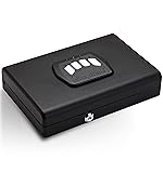 SnapSafe 2 Gun Keypad Vault – Keep guns and valuables close at hand and out of the wrong hands! The compact size easily fits on a night stand, desk or shelf For Guns and Valuables – With a clamshell door, this keypad vault provides plenty of storage in a compact space. Fits up to 2 x 1911 firearms, or valuables, for example your passport, cash, jewelry and medications Easy Access – Programmable 4 to 6 digit keypad code balances security for handguns and valuables with quick access. Switch keypad to "silent mode" if desired. Includes 2 backup keys and patented security cable Sizing and Specifications – This two pistol gun safe measures 11 (H) x 8.5 (W) x 2.25 (D) inches. Weighs 4lbs. Foam-lined interior protects valuables. Requires 4 AA batteries (not included) Easy, No Tool Install – California DOJ approved. Features pre-drilled bolt holes for permanent installation. Constructed of 20-gauge heavy-duty steel. Pry resistant door design to stop unauthorized access