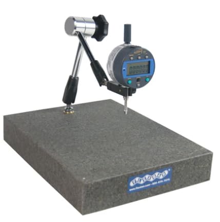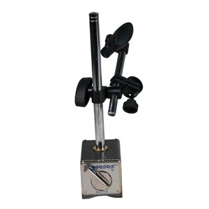 Single Axis fine adjustor Flexbar. The fine adjustment assembly is actuated by a very smooth micro-screw thumb adjustor making the Flexbar ideal for high precision indicating applications. Fine adjustor end holds AGD dial indicators with 3/8" stems (8mm bushing adapter included) and test indicators with dovetail fitting. Arm Length: 12" Does not include mag. base