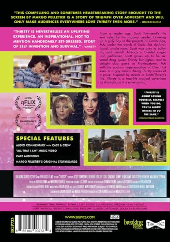 Bullied girly-boy Scott Townsend grows into revered drag queen Thirsty Burlington fighting obstacles along the way only to discover what he really wants is self-acceptance
