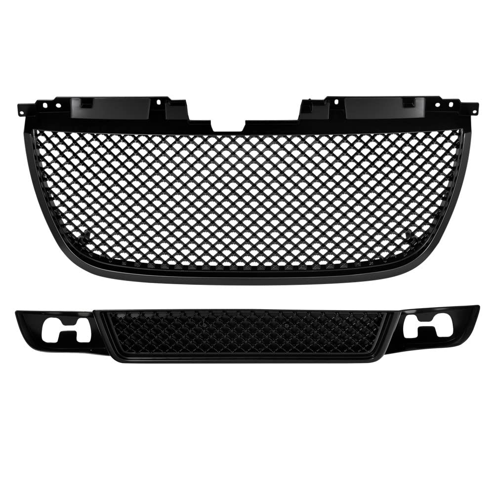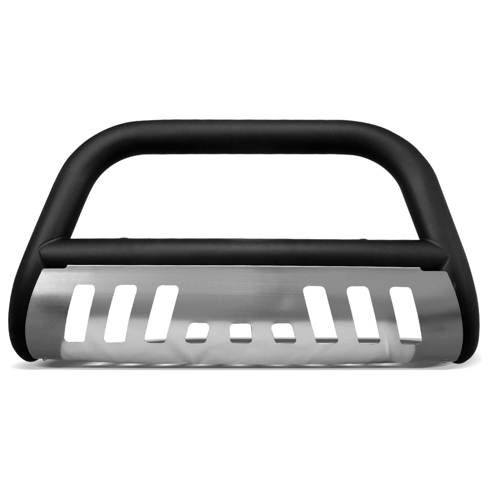 Matte Black Studded Mesh Bull Bar Brush Push Front Bumper Grill Grille Guard with Skid Plate Compatible with 11-13 Dodge Durango / 11-15 Jeep Grand Cherokee
