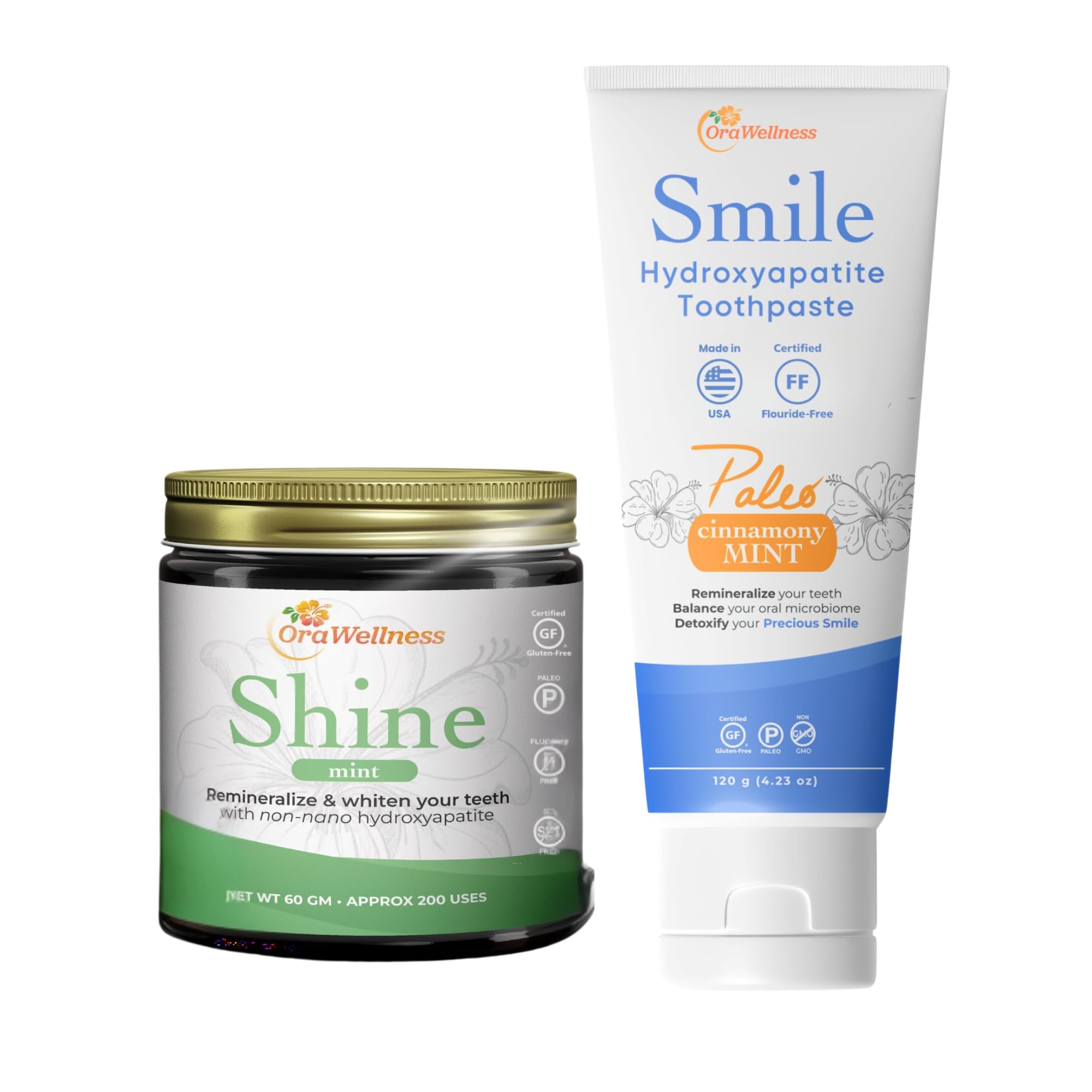 OraWellness Shine Remineralizing Tooth Powder with Hydroxyapatite, Made in The USA, Fluoride Free Tooth Repair, Natural Teeth Whitening Powder, Teeth Polish & Stain Remover, Mint