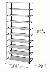 Shoe Rack Storage Constructed with a durable metal frame and easy wipe clean fabric Place this shoe tower in the entryway or garage to store more than just shoes—folded garments, handbags, hats and more Free-standing storage shelves with a lightweight design Assembled Dimensions: 11.25 L x 23.88 W x 58.63 H inches This no tools required shoe rack looks great & adds function to almost any space