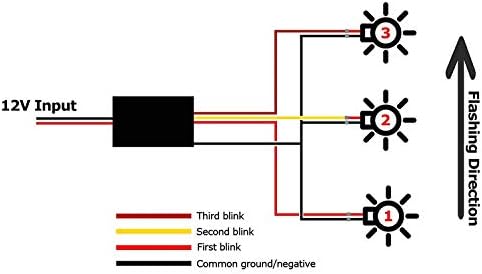- Installation Tips: connect the output side common black wire to ground or negative, and three positive wires to the individual turn signal light bulb positives, and then input side two wires to the original lamp's 12V +/- power source, and keep the control module box inside to prevent water damage (for detail, please check the diagram)
