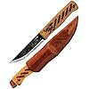 Condor Tool & Knife Norse Dragon Fixed Blade Knife with Leather Sheath - 1905 High Carbon Steel - Burnt American Hickory Handle - 3.8 in Blade - 2.8 oz