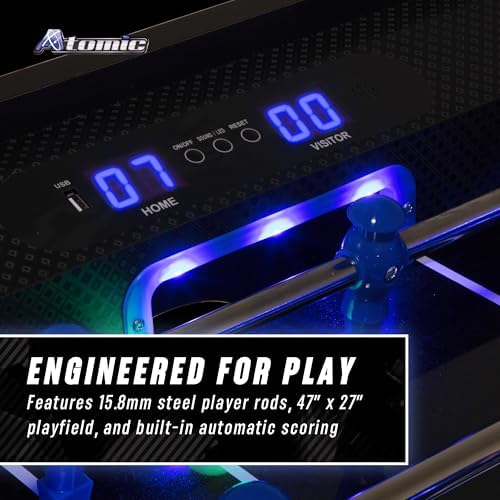 - BUILT FOR SERIOUS PLAY – Features a 47” x 27” arcade-style playfield, 15.8mm steel player rods, and automatic electronic scoring for nonstop competition.