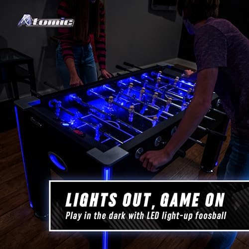 - LIGHTS OUT, GAME ON – Light up the night with the illuminating technology of the Azure LED Light Up Foosball Table