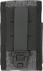 100% Nylon Imported Overall size is 2.75 (L) x 1.25 (w) x 4.5 (H) inches (7.0 x 3.2 x 11.4 cm). designed for everyday carry Hook & loop flap fastener. Lightly padded interior and high quality elastic bands keep objects safe and secure Use for small items such as multi-tools, small camera, or pistol magazines. Also suitable for smaller phones, and can fit the Apple iPhone 5/se Wear on a belt of attach to a bag/pack. Comes with one (1) matching TacTie Pjc3 polymer joining Clip for modular attachment to any molle-compatible surface such as atlas or PALS