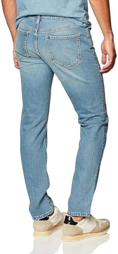 Crafted from mid-weight cotton denim, these blue jeans for men incorporate a light-stretch fabric, providing all-day comfort. The classic design includes five pockets, a zippered fly, metal button closure, bartack reinforcements, and rivets at the front hand pockets. With a variety of denim washes and solid colors, these Amazon Essentials men's slim jeans offer men's clothing that combines affordability and high standards.