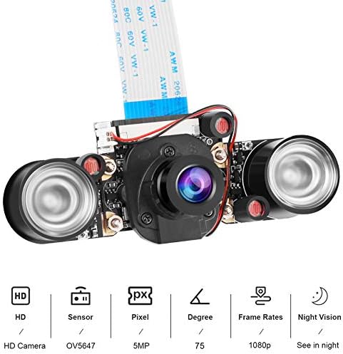 MakerFocus Raspberry Pi 4B Camera IR Camera Module 75 Degree 5MP OV5647 Webcam Automatically Switching Between Day and Night Vision with Holder and Cable for Raspberry Pi 5 4B 3B+ Zero and Zero W