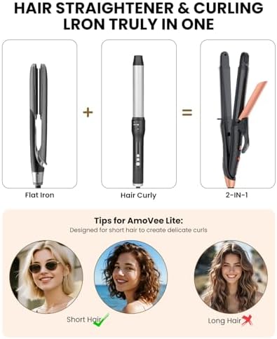 - [2-in-1 Curling & Straightening Tool] Switch the travel curling iron dual voltage from straight to curly with just one button, no need for multiple tools. The mini curling iron travel size helps you create super smooth straight hair, delicate curls or cascading wavy curls for a beautiful look