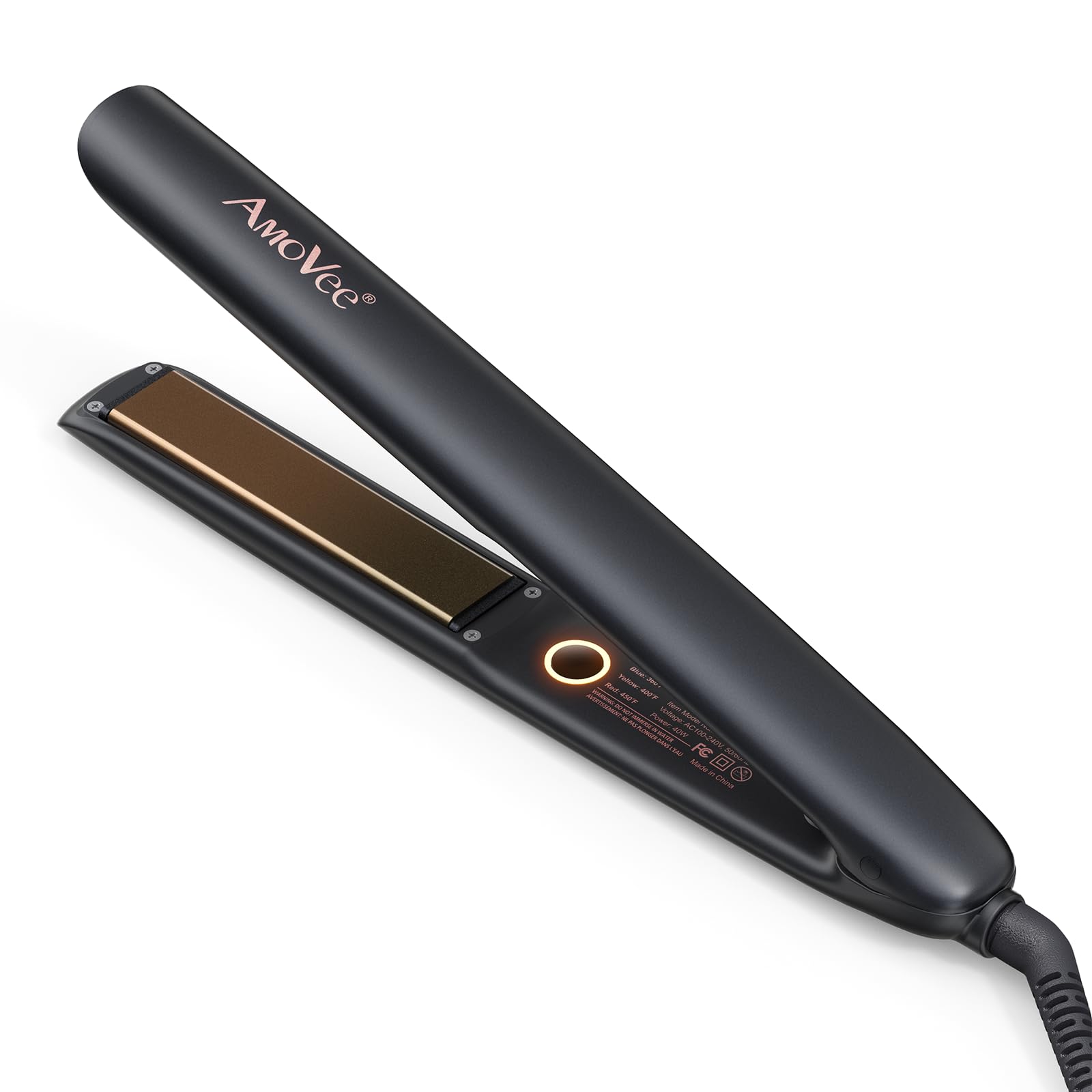 - [390°F & 30S Heating] The flat iron is equipped with PTC rapid heating technology,30 seconds fast heating set 390°F strong heat, plug in and heat up instantly. This european curling iron features a titanium barrel that heats up evenly and smoothly for effective hair protection and quick frizz repair.