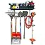 - Maximum Tool Storage Capacity – Organize your garage with this wall mount garage tool organizer designed to hold a wide variety of equipment. Store garden tools, shovels, rakes, brooms, power tools, extension cords, hoses, and even bulky items like wheelbarrows and chainsaws. Clear up floor space and keep your gear accessible for your next project with this all-in-one garage organization system.