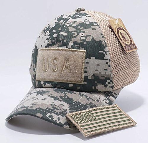 Pit Bull U.S. Flag Detachable Patch Micro Mesh Trucker Baseball Cap Hat (Green Dig Camo)
