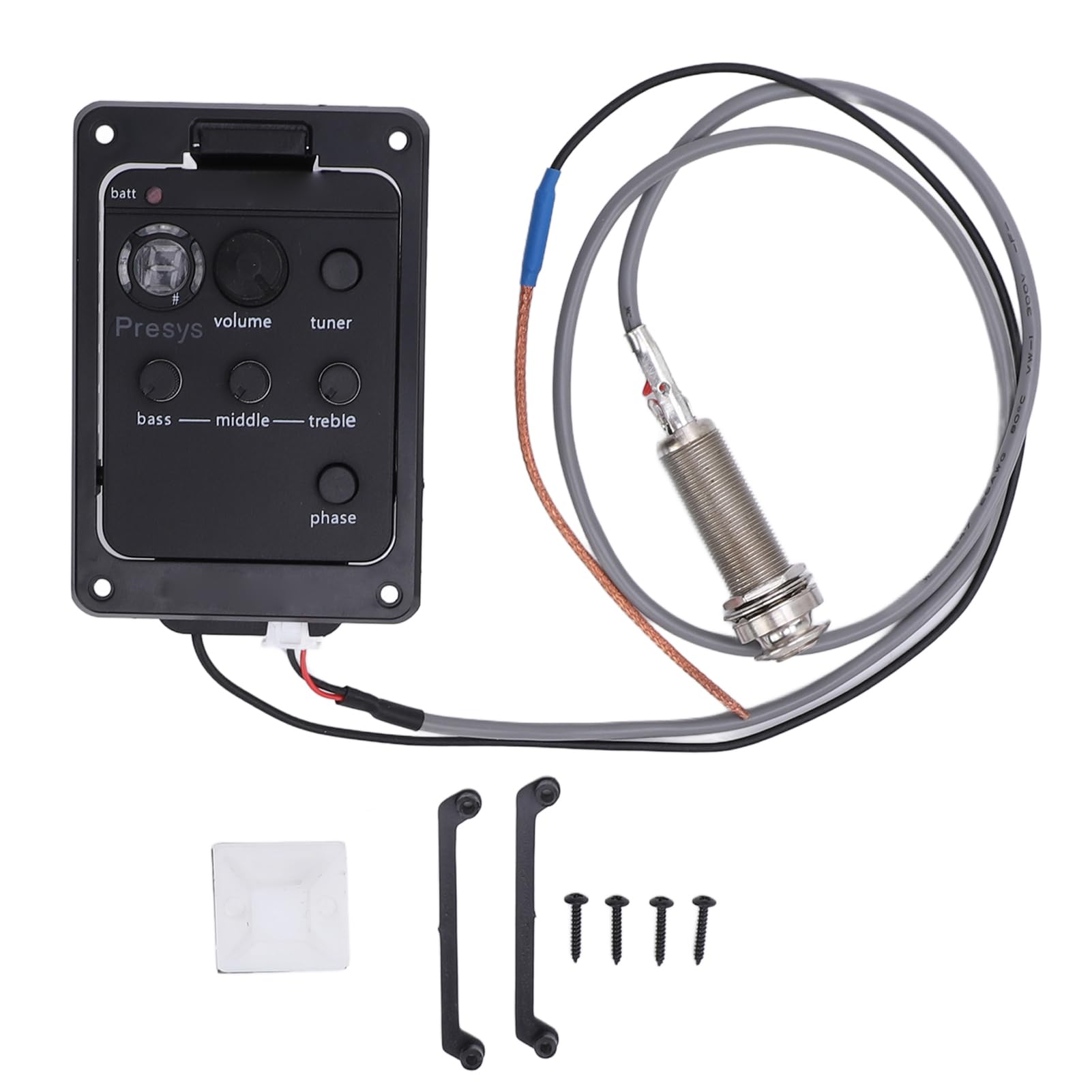 Tbest Preamplificador de guitarra, ecualizador de preamplificador de guitarra, sintonizador digital, pastilla de ecualizador de 5 bandas F-5T, sintonizador digital, sintonizador de preamplificador de guitarra eléctrica acústica con sintonizador LCD y control de volumen