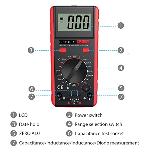 - Proster LCR: medidor de inductancia, capacitancia y resistencia, es un instrumento digital especial que es fácil de operar, el grado de precisión de lectura es mayor con pantalla de cristal líquido 3 1/2.