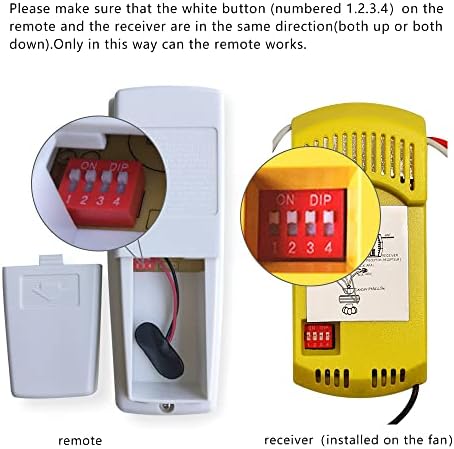 - EASY INSTALL: Make sure that the four dip switch modes of the new remote control are the same as the four dip switch modes of the original receiver. Replace the battery in the new remote control and everything is ready.The material of our fan light remote control is ABS.