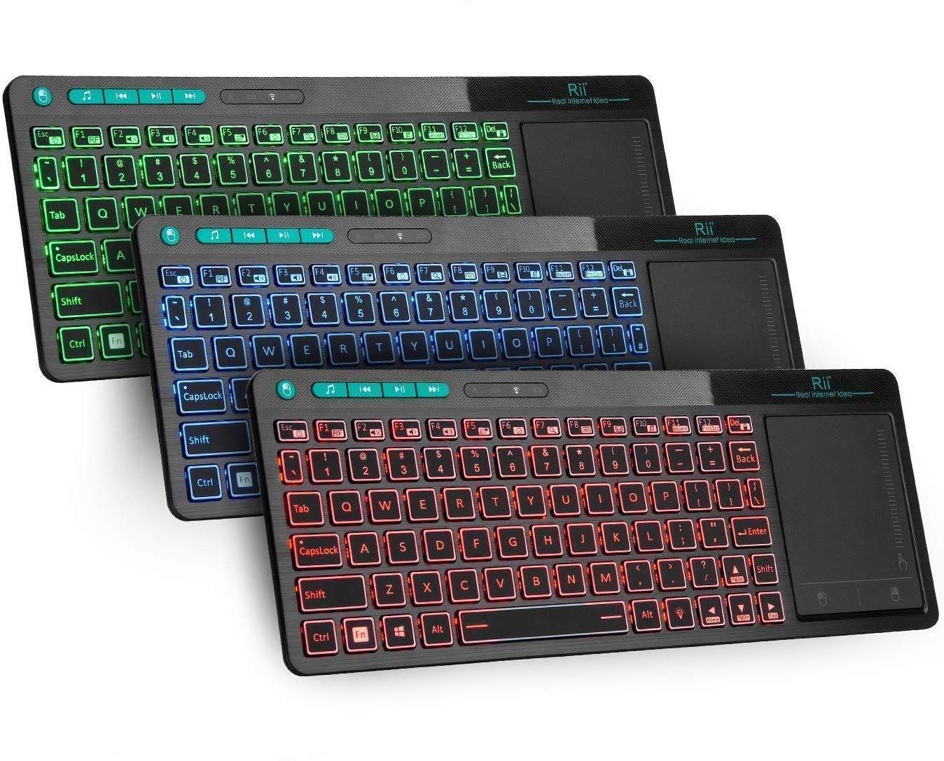 - 8-Color RGB Backlit,Multi-media buttons,Direction keys ,Power switch,Left and Right Buttons,Scroll wheel.Wireless mini keyboard with built in rechargeable lithium-ion battery.