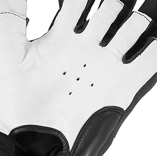 Premium leather gloves with UCV palms ensures breathability and comfort. Superior broken knuckle design allows you to grab and punch perfectly. Padded reinforced 5: wide wrist support with 3" wide elastic hook and loop closure technology provides a sure closure fit every time. Hand crafted construction that is reinforced throughout and four sizes available