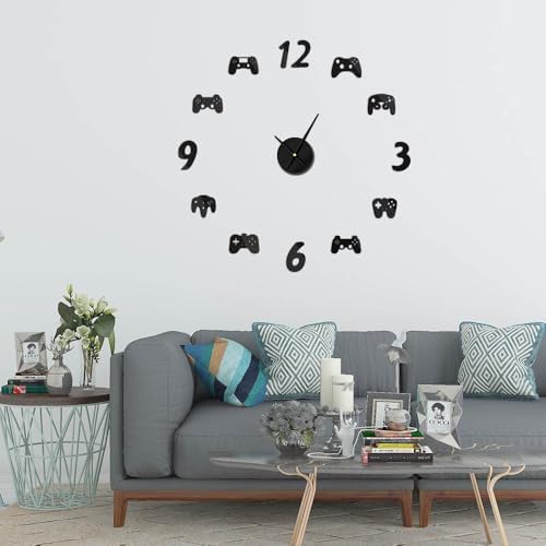 The Geeky Days Video Game Controllers DIY Large Gamer Wall Clock Game Room Decor Modern Design Freamless Giant Wall Clock Game Boys Room Wall Watch (Black)