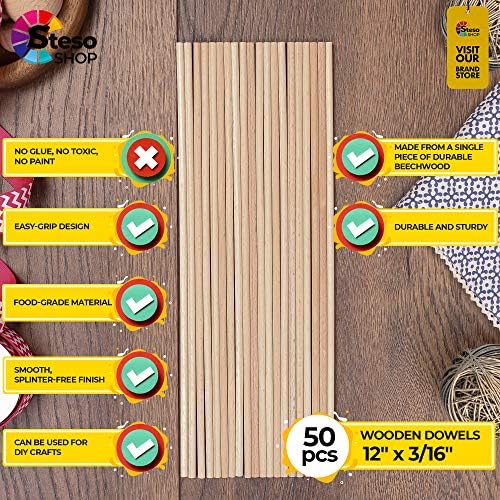 - 🎏 Multipurpose Use: The StesoSHOP wooden dowels are very practical for both household and industrial needs. They are 100% food-grade and have a uniform finish that can be colored, so you can use them for DIY home or school projects, crafting, handmade presents, or food.