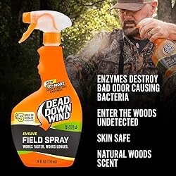 - Spray the scent away Dead Down Wind Evolve field Spray features advanced enzyme technology to help eliminate a broad spectrum of odors that can attach to your skin, clothing and hunting gear. Evolve is made with enzymes that are Natural, healthy and. It’s never made with biocides, so you can use confidently knowing that your skin is safe. Spray Evolve on any and all of your hunting gear. About Dead Down Wind Dead Down Wind products are specifically formulated to help reduce odor signatures to the lowest possible level. Our science-based, broad-spectrum approach offers the widest range of predator cue protection in scent control. From deodorizing laundry detergent that breaks down biofilms and blood stains to scent-eliminating personal care products and field sprays that further eliminate telltale odors, we offer a broad range of category-leading, odor-eliminating products.