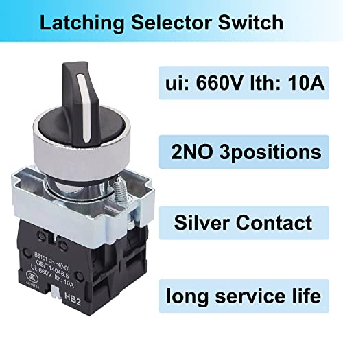 TWTADE / 2Pcs 22mm Selector Switch 2 NO 3 - Positions Maintained Latching Rotary Selector Switch 440V 10A XB2-20X/31-HB2-BD33