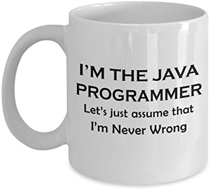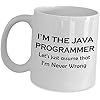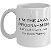 Java Programmer Developer Coffee Mug - Funny Cute Gag Gifts Ceramic Tea Cup Computer Software Engineer Website Front End Script HTML Web - Lets Just Assume Im Never Wrong