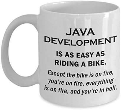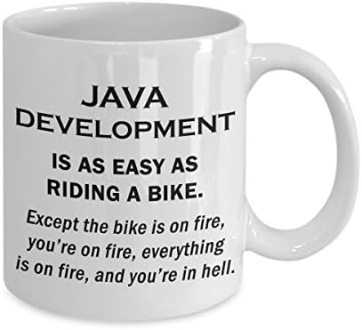 Java Development Funny Cute Gag Graduation Gifts - Web Script Developer Ceramic Coffee Mug Tea Cup Website Front End HTML Programmer Computer Software Engineer - Easy As Riding A Bike On Fire