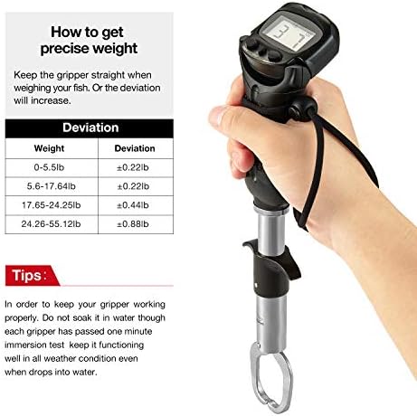 - Nota: La balanza y el LCD funcionan con dos pilas AAA. Para una medición de peso precisa, trate de mantener el pez quieto durante la pesaje