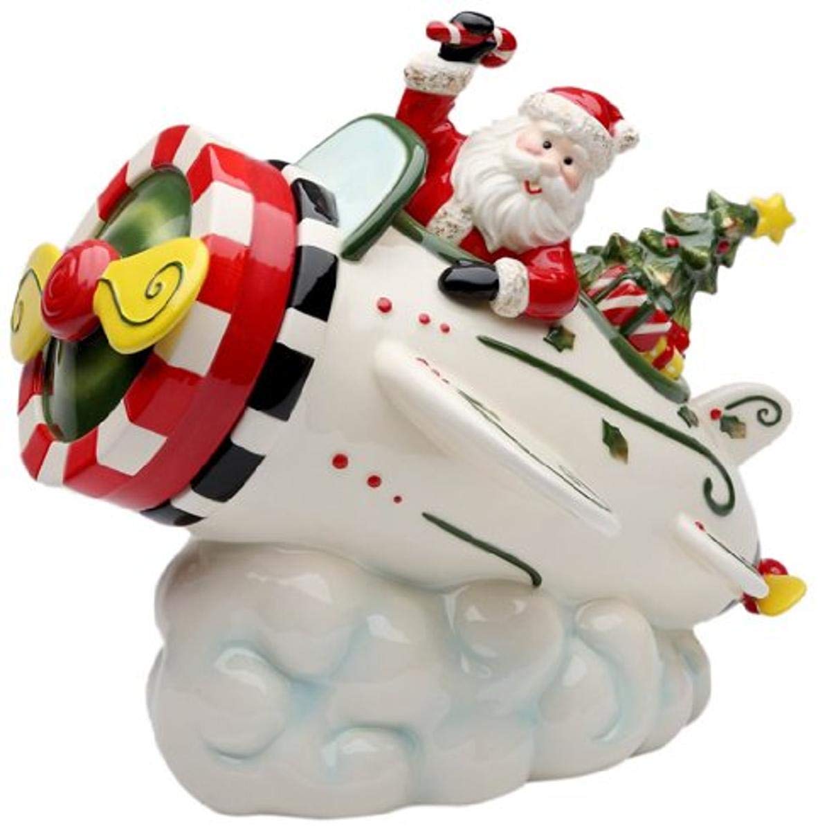 Cosmos Gifts Fine Ceramic Hand Painted Christmas Santa with Red Cardinal and Pinecone Cookie Jar, 10 3/4" H