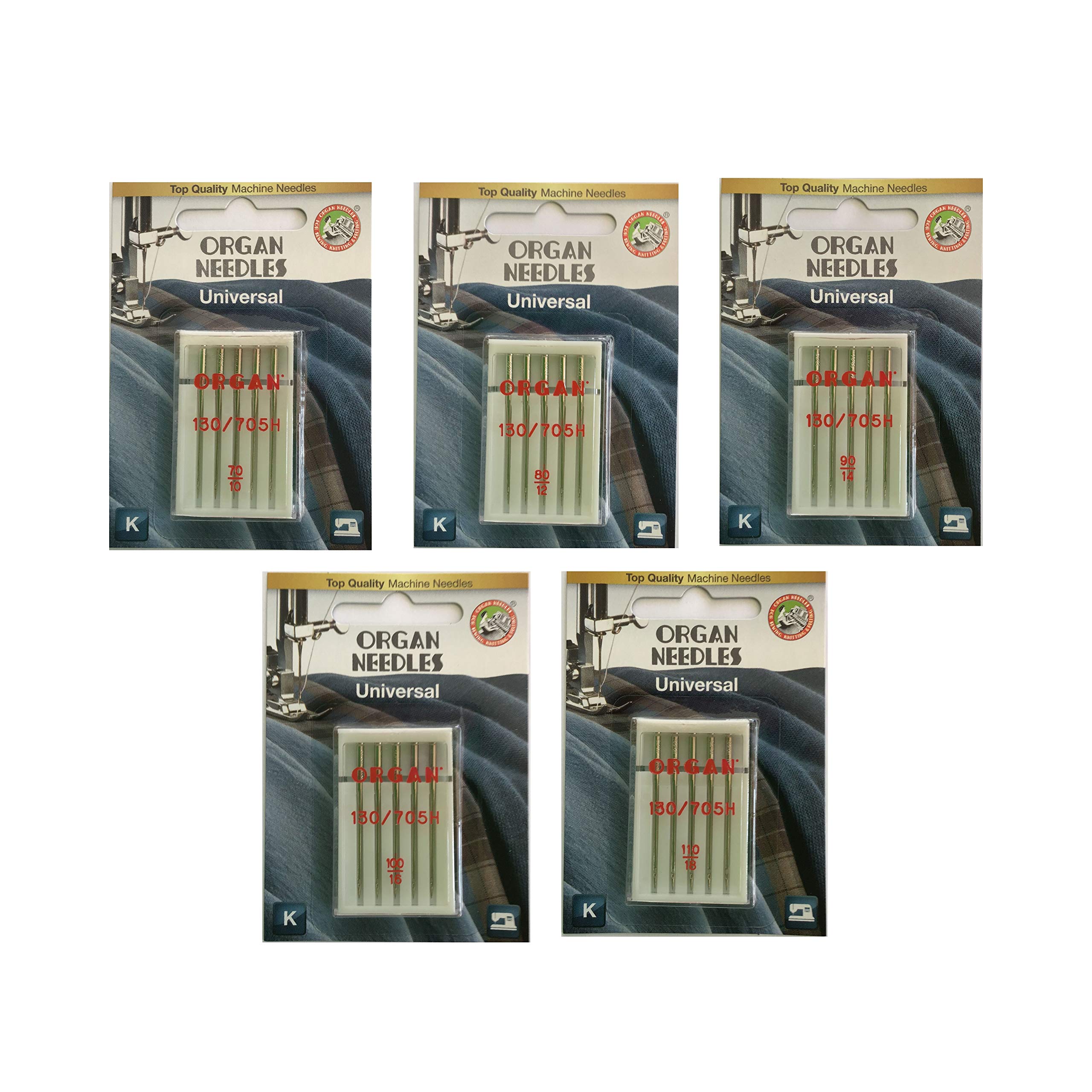 - This set includes (5) size 90/14 for medium weight denim, (5) size 100/16 for heavyweight cotton, and (5) size 110/18 for upholstery fabrics