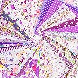 RayLineDo 50pcs 1010cm Different Pattern Patchwork Fabric Craft Printed Material Mixed Squares Bundle Quilting Scrapbooking Sewing Artcraft DIY Fabric Purple Series