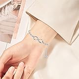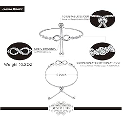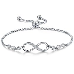 Infinity Bracelets for Women: With a fabulous infinity design, infinity is forever, your love will last into infinity. As an special gift for daughters, mothers, wifes, sister, teenage girls,best friend and lovers Material: The white gold plated bracelets exquisite polish technique is used here,shinning cubic zirconia is inlaid on the infinity symbol. Very Catch Eyeballs,Show you something distinguish in a special occasion, showing women's fascination Adjustable: Sliding design, easy to adjust, you can easily adjust without any help. Suitable for all wrists, even for small or strong wrists.The improved process won't make your skin green or red or itchy Gifts Ideal: Infinity bracelets for teen girls comes in a pretty gift box. Ideal gifts for Christmas, Mother's Day, Valentine's Day, bridal,birthday gifts or your other special occasion you would like to make memorable Service: We value your shopping experience very much, we promise you 180 days so if you have any questions, Please feel free to contact us
