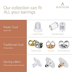 - These earring backs measure approximately 5mm by 5.4mm with a 1mm hole, fitting most earring posts. They're easy to attach and remove, lightweight, and comfortable. The clear color suits various earring styles, from elegant to casual. Crafted from high-quality rubber, they resist rust, corrosion, and tarnish, making them hypoallergenic and low-maintenance. They're soft yet secure, providing all-day comfort. Each set includes 1000 clear backs, packaged in a convenient plastic box for easy carrying and storage. Worry-free replacement: This economical set is perfect for replacing lost backs or having spares. Ideal for fashion jewelry designers and DIY enthusiasts. DIY lovers' favorite: These rubber backs are excellent for earring back replacement, making posts, and various DIY earring projects.