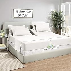 600 Thread Count Split Sheet Set 5PC Split King Sheets for Egyptian Cotton Split King Sheet Set 16 inch Deep Pocket Adjustable Bed Sheets, White Solid
