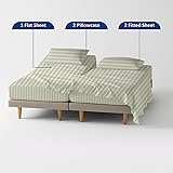 5-Piece Split King Sheet Set – Includes 2 fitted sheets (39"x80"), 1 flat sheet (102"x108"), and 2 pillowcases (20"x40"). Fitted sheets feature elastic for a snug fit on mattresses up to 16" deep. Temperature Regulating – Silky-soft, breathable, and moisture-wicking 100% Egyptian Cotton keeps you cool in summer and cozy in winter. Gentle on sensitive skin—perfect for all ages and sleepers. Snug Fit Design – Deep pockets fit mattresses up to 16" with all-around elastic for a secure, stay-in-place fit and easy on/off. Hassle-Free Returns – Return anytime for any reason—no questions asked. Backed by top-rated customer service for a worry-free purchase. Easy Care – Quick-drying, durable weave is machine washable and easy to spot clean—perfect for busy homes with kids, pets, and everyday use.