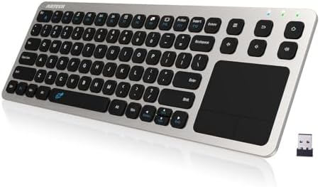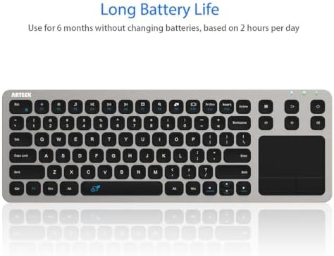 Teclado inalámbrico, Arteck 2.4G teclado inalámbrico para TV táctil con control multimedia sencillo y ratón táctil incorporado, acero inoxidable sólido, ultra compacto, tamaño completo, para ordenador conectado a TV, Smart TV, HTPC